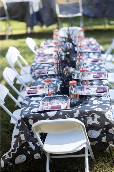 Two kid tables (folding tables. Tablecloth required by client)