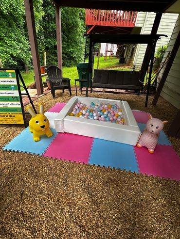 4x4 ball pit with two hopper animals